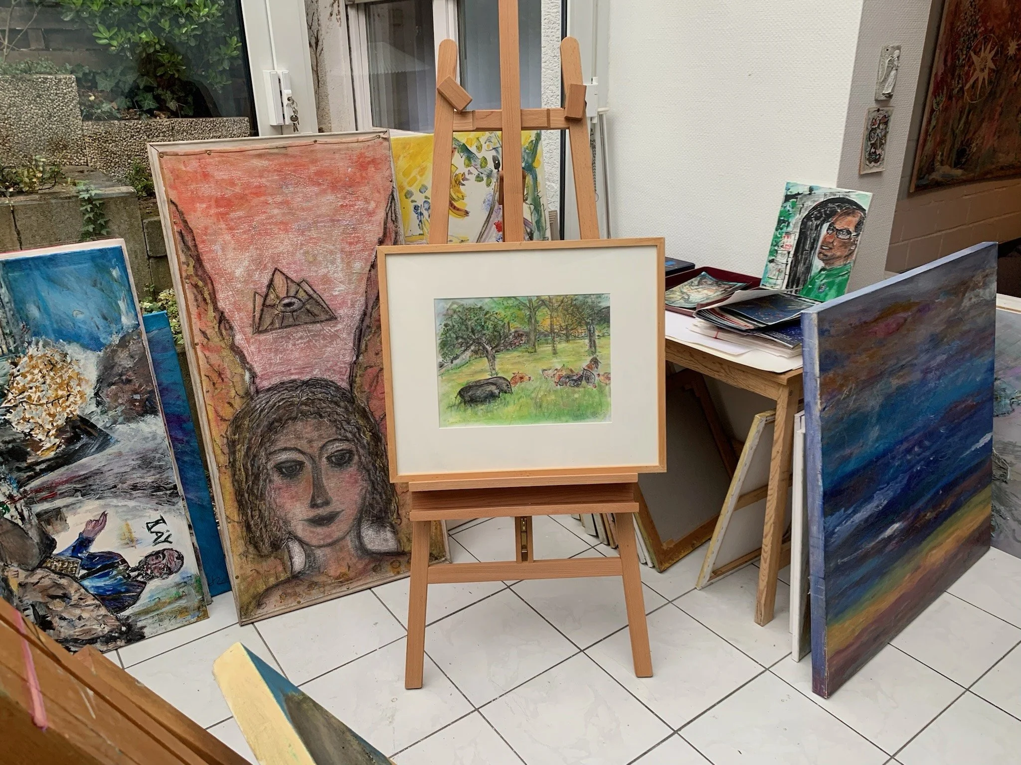 Arbeiten auf Papier + Leinwand in Acryl + Pastellkreide/Ölpastell/Collagen